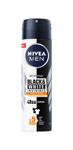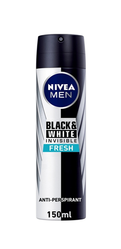 بخاخ مزيل العرق نيفيا للرجال باللونين الأسود والأبيض برائحة منعشة وغير مرئية، 150 مل